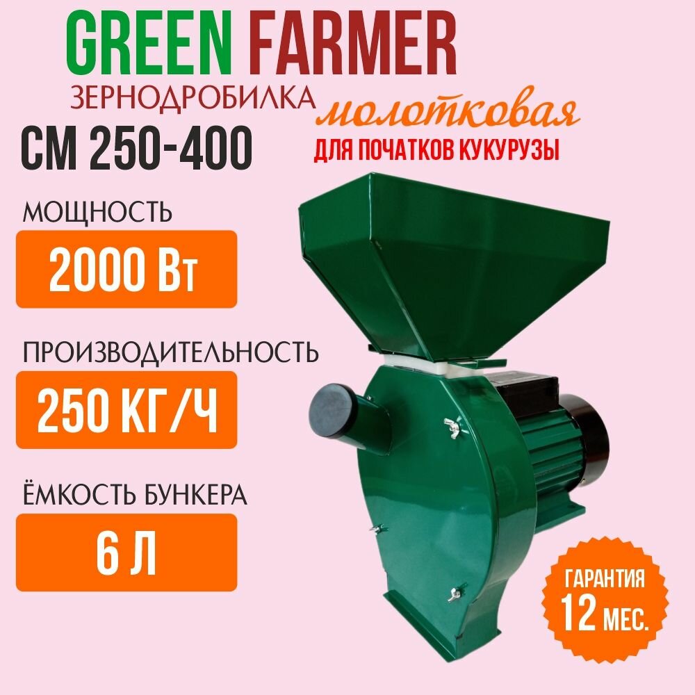 Зернодробилка молотковая GREEN FARMER СМ 250-400 измельчитель зерна, кормоизмельчитель интересное:
