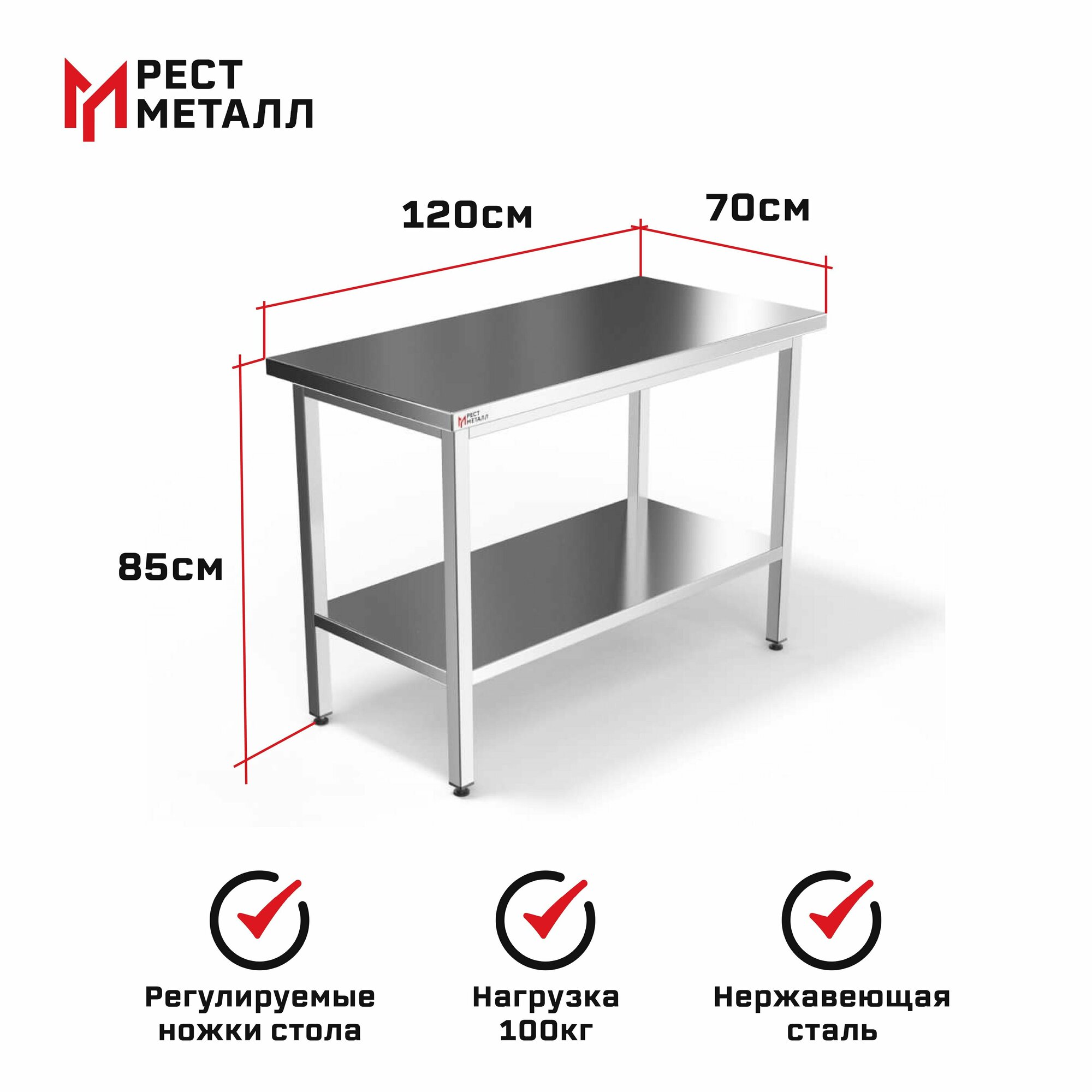 Стол производственный островной 1200*700*850 серия Стандарт, столешница нержавеющая сталь, толщина 0,8 мм; каркас разборный, сплошная полка интересное: