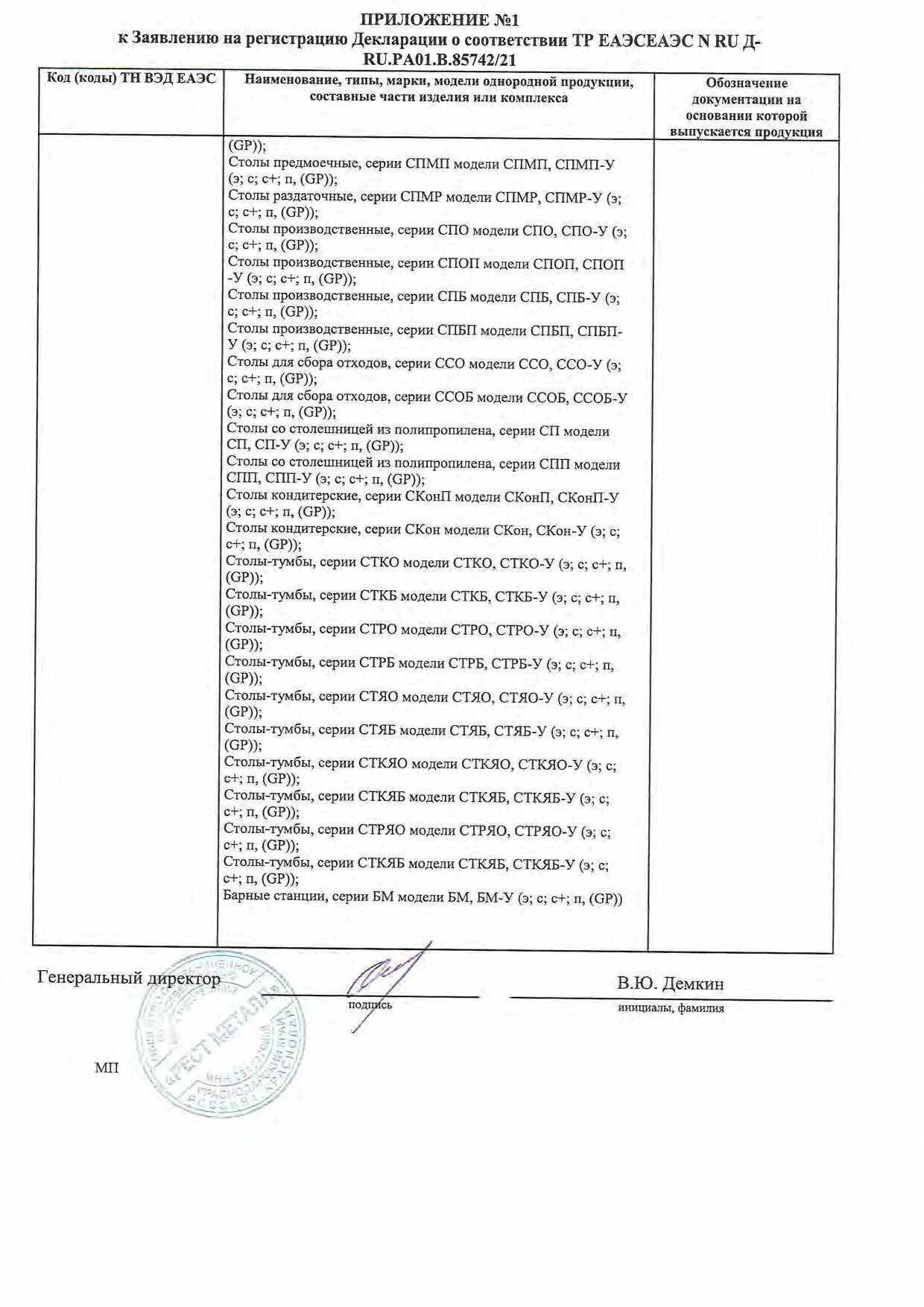 | Тип | стол производственный |