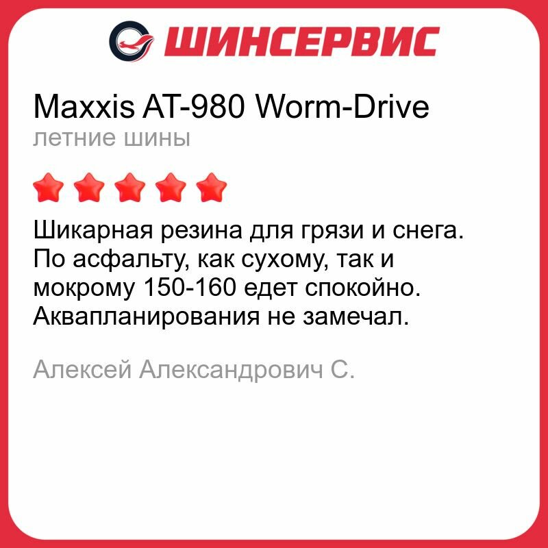 Ниже Вы можете прочитать отзывы на Летние шины 16/285/75 Maxxis Wormdrive AT-980E 116/113Q, ознакомится с подробными характеристиками, посмотреть интересные обзоры и фотографии на Летние шины 16/285/75 Maxxis Wormdrive AT-980E 116/113Q.