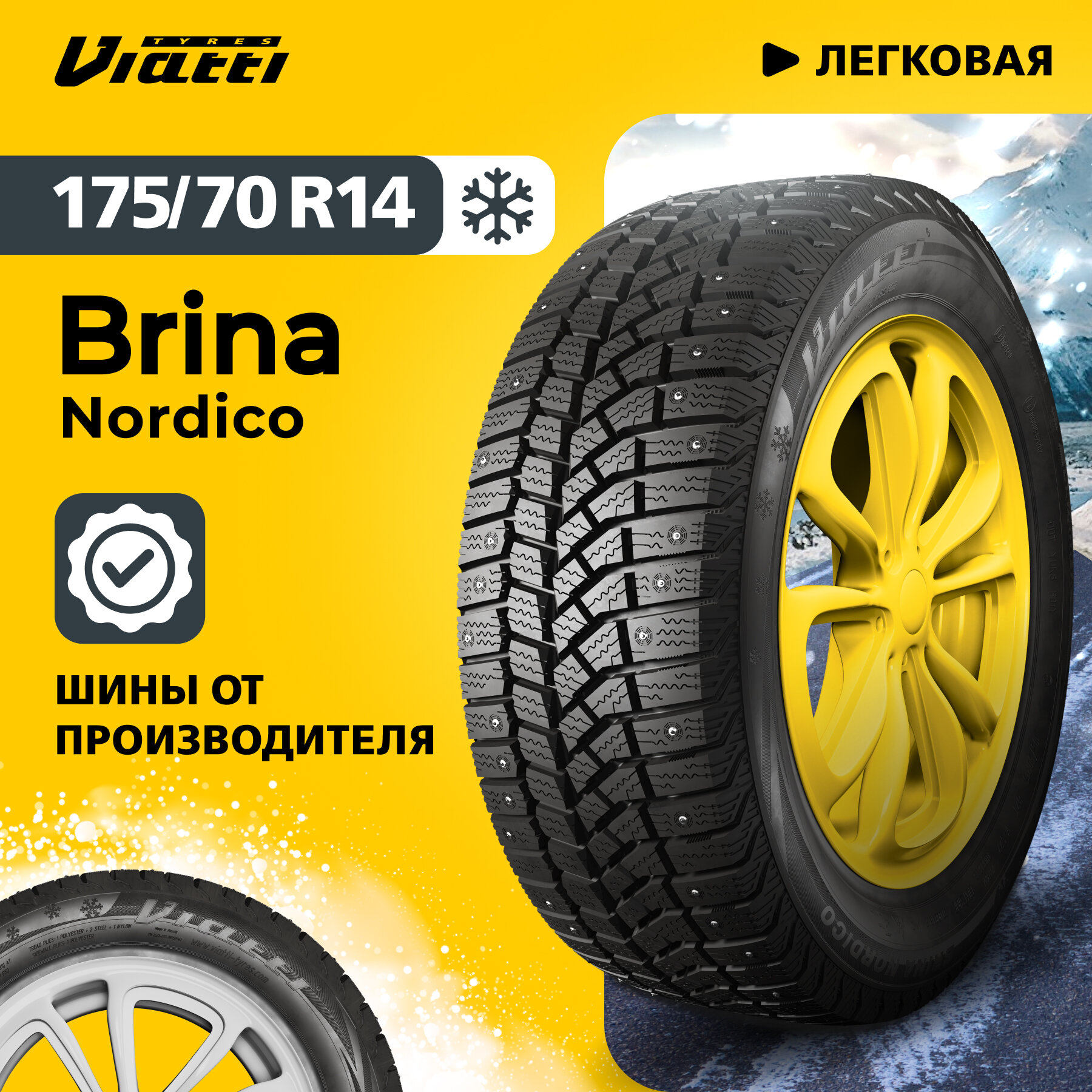 Шина Viatti Brina Nordico V-522 шип 175/70 R13 82T зимняя шипованная