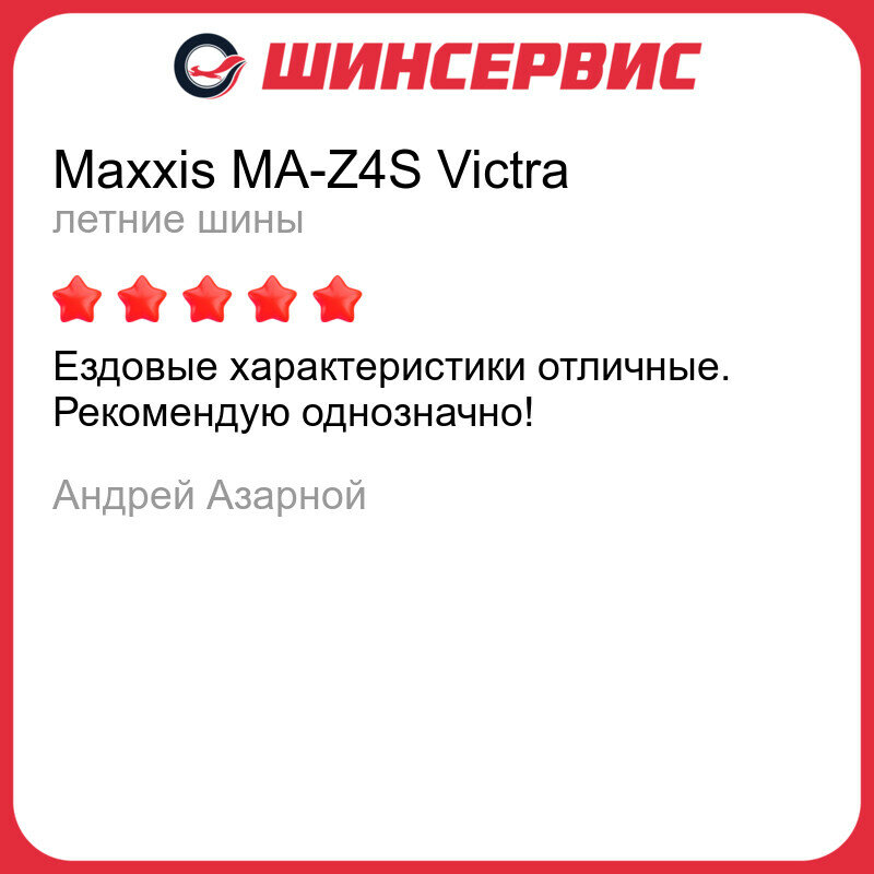 Ниже Вы можете прочитать отзывы на Автошина Maxxis Victra MA-Z4S 245/40 R20 99W ZR XL, ознакомится с подробными характеристиками, посмотреть интересные обзоры и фотографии на Автошина Maxxis Victra MA-Z4S 245/40 R20 99W ZR XL.