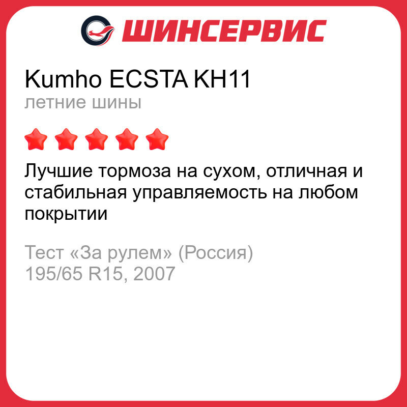 Ниже Вы можете прочитать отзывы на Шина Kumho(Кумхо) ecsta kh11 215/55 R18 95H летняя, ознакомится с подробными характеристиками, посмотреть интересные обзоры и фотографии на Шина Kumho(Кумхо) ecsta kh11 215/55 R18 95H летняя.