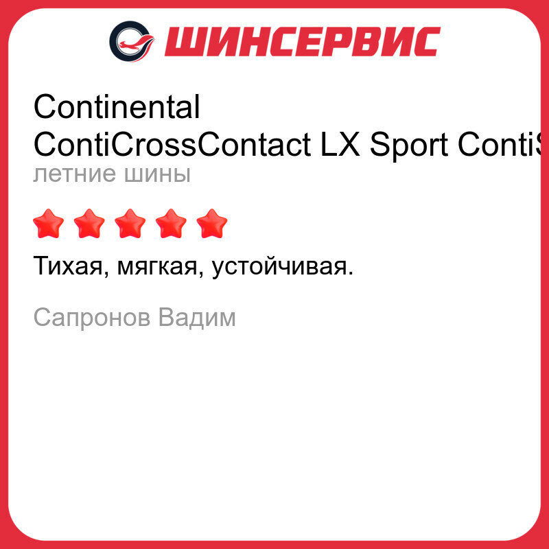 Ниже Вы можете прочитать отзывы на Летняя шина Continental ContiCrossContact LX Sport ContiSilent 275/45 R20 110V, ознакомится с подробными характеристиками, посмотреть интересные обзоры и фотографии на Летняя шина Continental ContiCrossContact LX Sport ContiSilent 275/45 R20 110V.