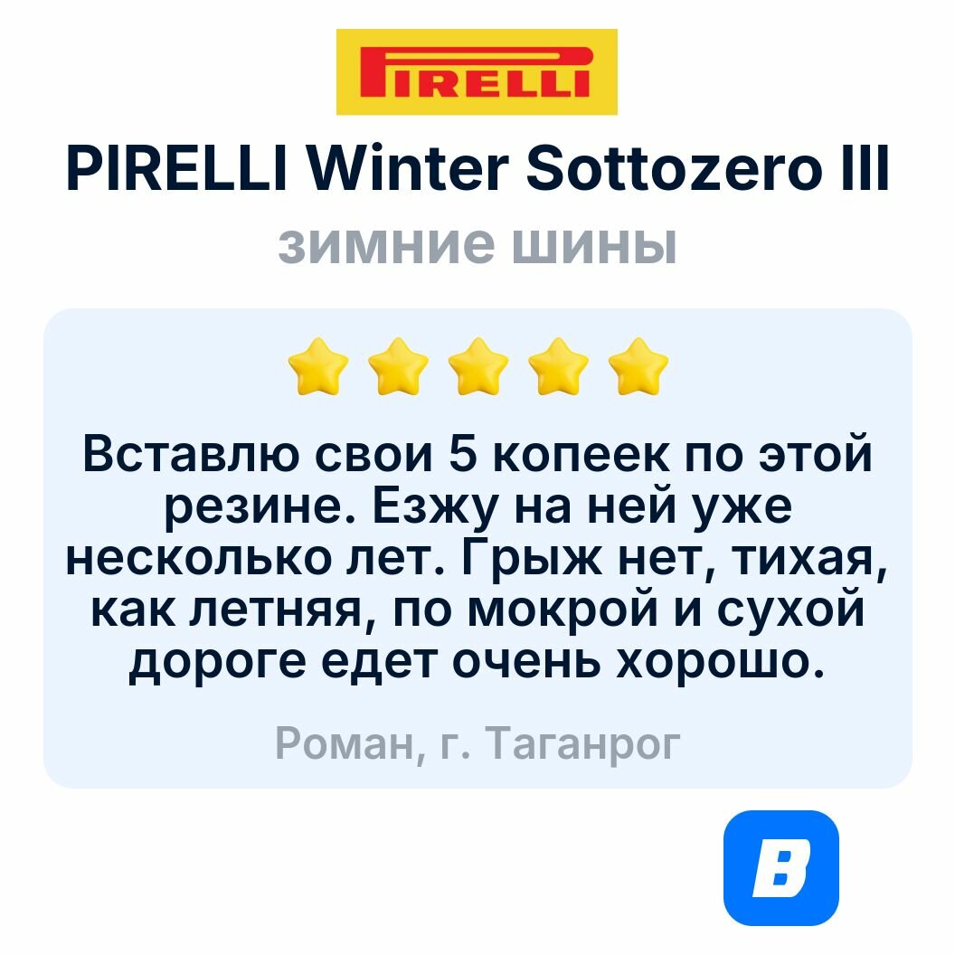 Ниже Вы можете прочитать отзывы на Зимние шины PIRELLI Winter Sottozero III 225/45R18 95H RunFlat MOE XL, ознакомится с подробными характеристиками, посмотреть интересные обзоры и фотографии на Зимние шины PIRELLI Winter Sottozero III 225/45R18 95H RunFlat MOE XL.