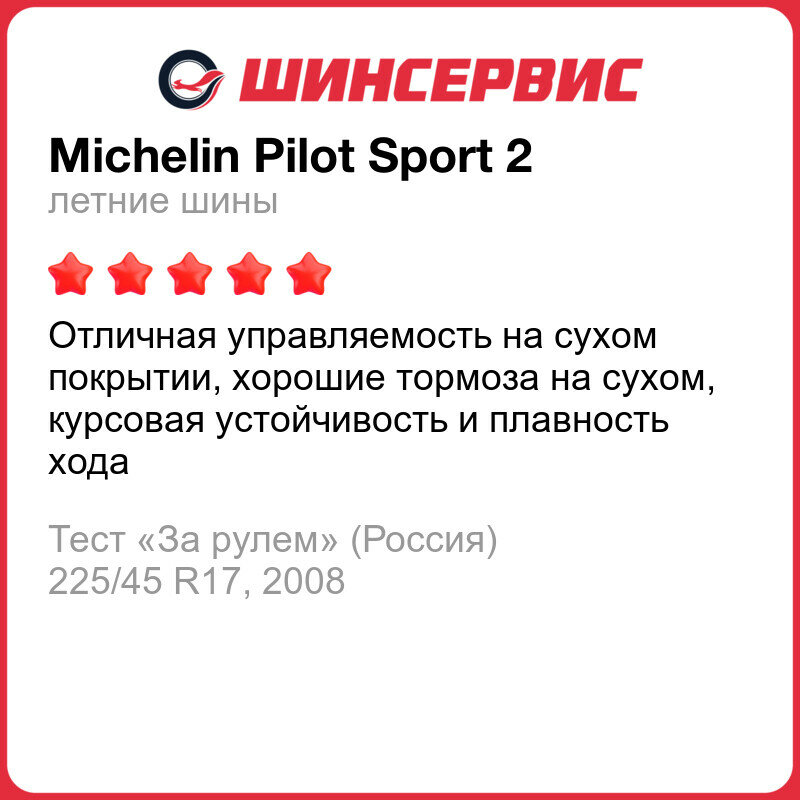 | Отзыв: | ПилотСпорт - лучшая шина в классе MaxPerfomanceSummer от отзывам сотен пользователей на авторитетном американском портале TireRack. Тем кому "не понравилось" - вы в меньшинстве и ваше мнение необъективно.