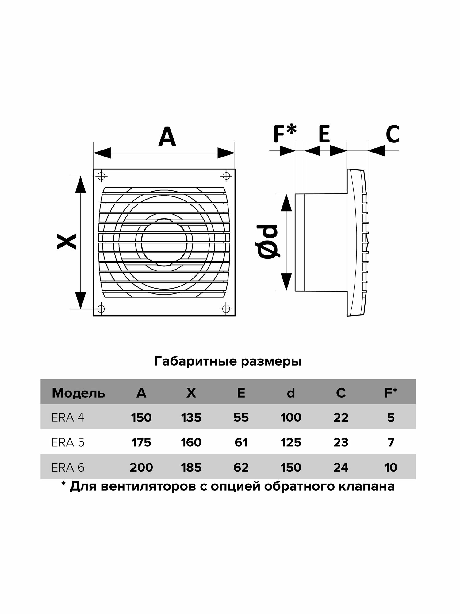 Вентилятор осевой вытяжной Era 5C, с обратным клапаном, D 125, 16 Вт