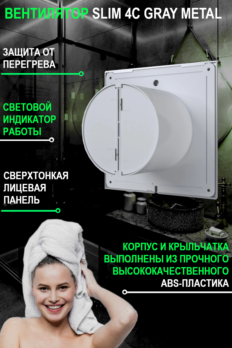 Вентилятор осевой вытяжной с обратным клапаном SLIM 4 C Gray metal