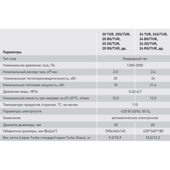 Газовая колонка водонагреватель серия TURBO Oasis TUR 20
