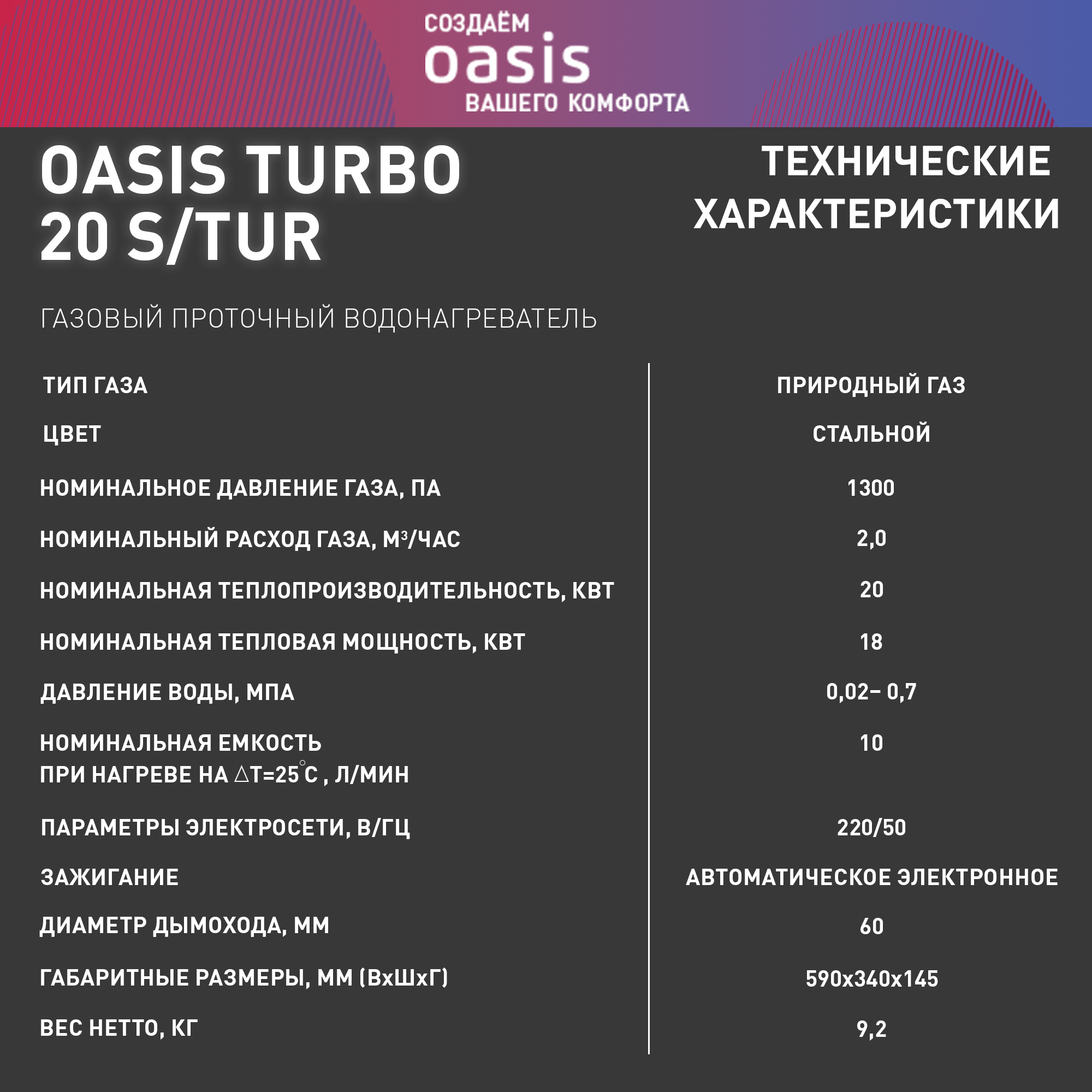 СохранитьГазовая колонка Oasis 20 S/TUR (серый металик) интересное: