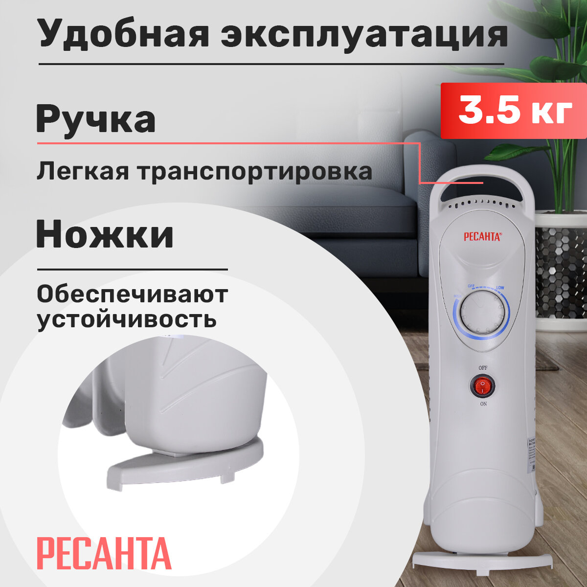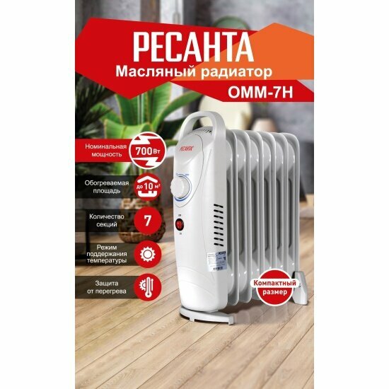 Масляный радиатор РЕСАНТА ОММ-7Н, 700Вт, белый [67/3/1]