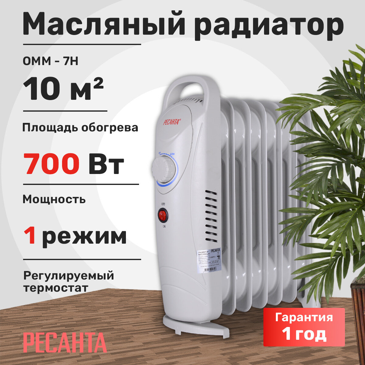 Масляный радиатор Ресанта ОММ-7Н, с терморегулятором, 700Вт, 7 секций, 1 режим, белый [67/3/1]