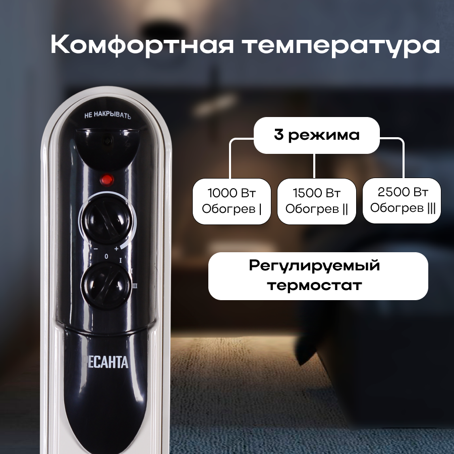 СохранитьМасляный радиатор РЕСАНТА ОМПТ-12Н, 2,5 кВт, до 25м2,11 секциц интересное: