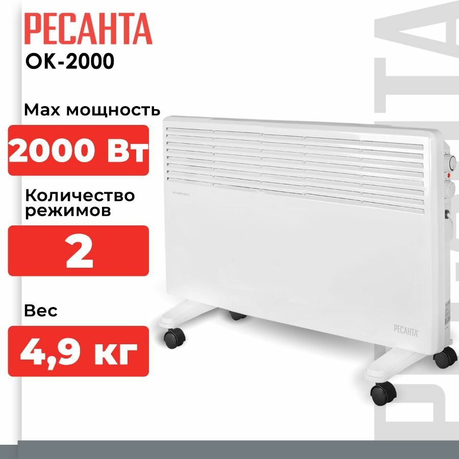 Купить Конвектор, обогреватель электрический Ресанта ОК-2000 (2 режима; 25м2; термостат)