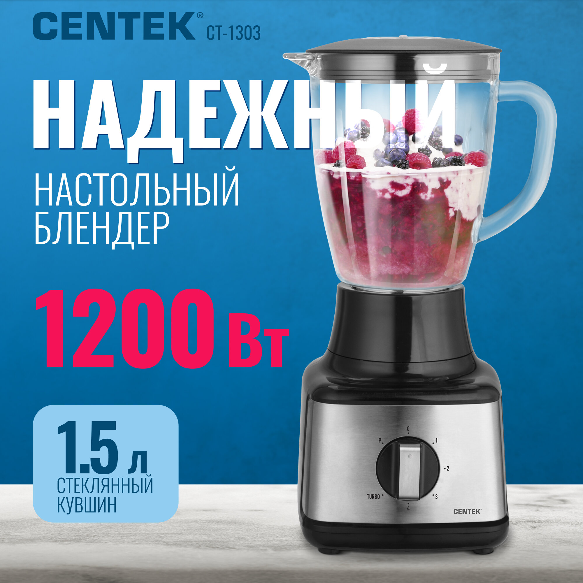 Купить Блендер стационарный CENTEK CT-1303: 1200Вт, стеклянная чаша 1.5л, 4 скорости + Pulse, 4 лезвия