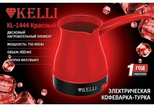 Купить Электрическая турка Kelli KL-1444, 0,4 л, 750-800 Вт, пластик, красный