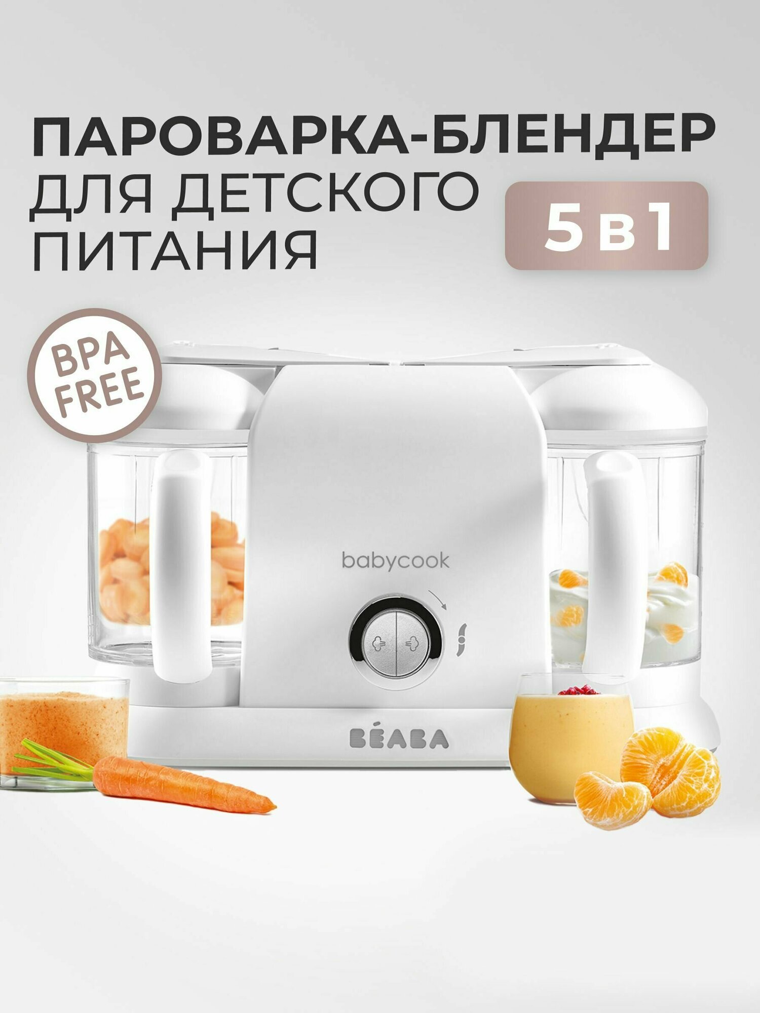 Пароварка блендер для детского питания Beaba Babycook Duo 4 в 1, с функцией стерилизации, измельчения, подогрева, разморозки