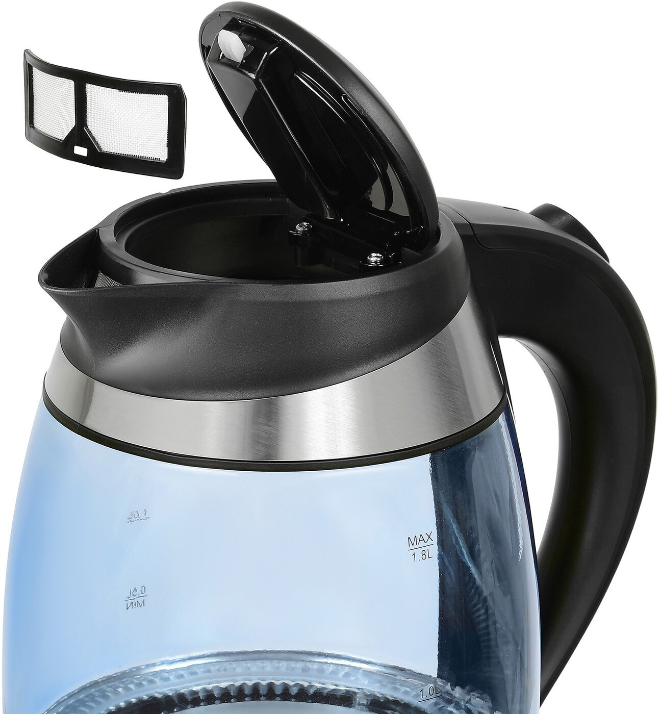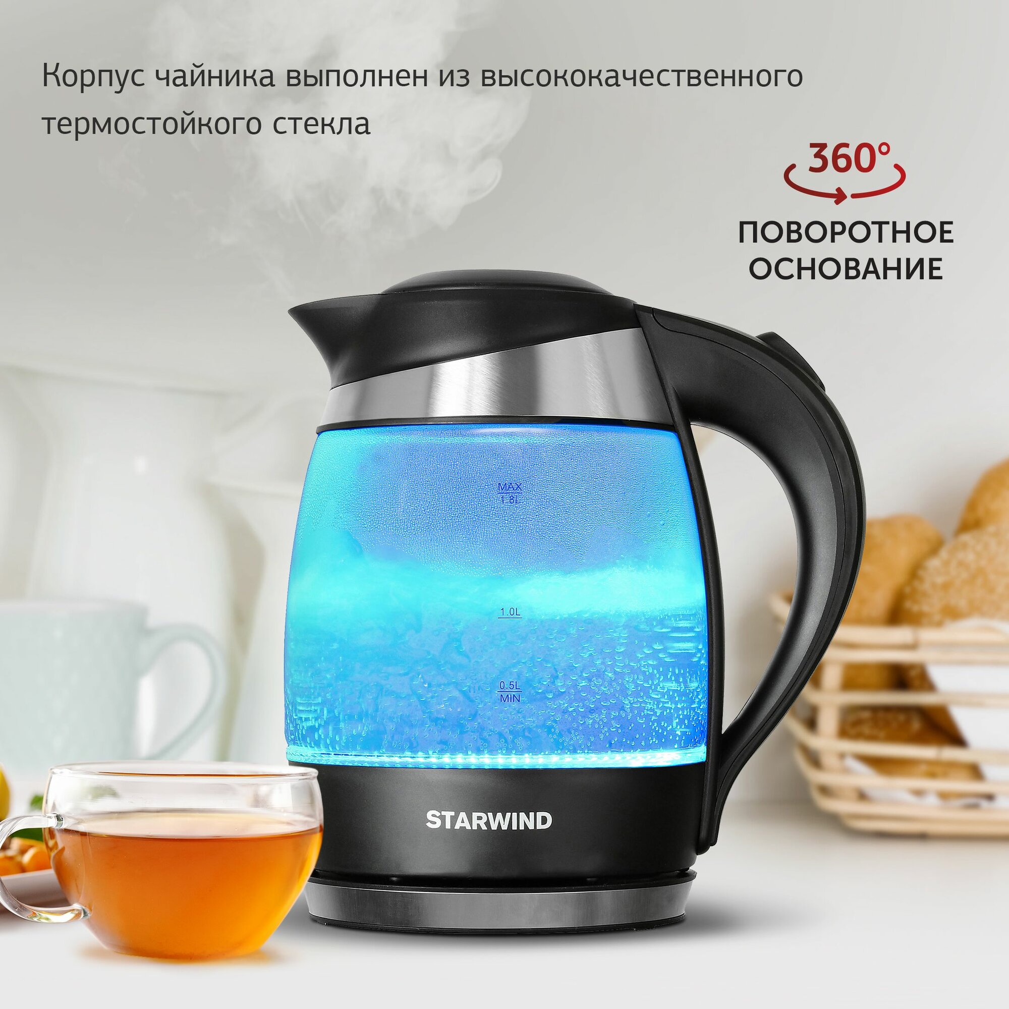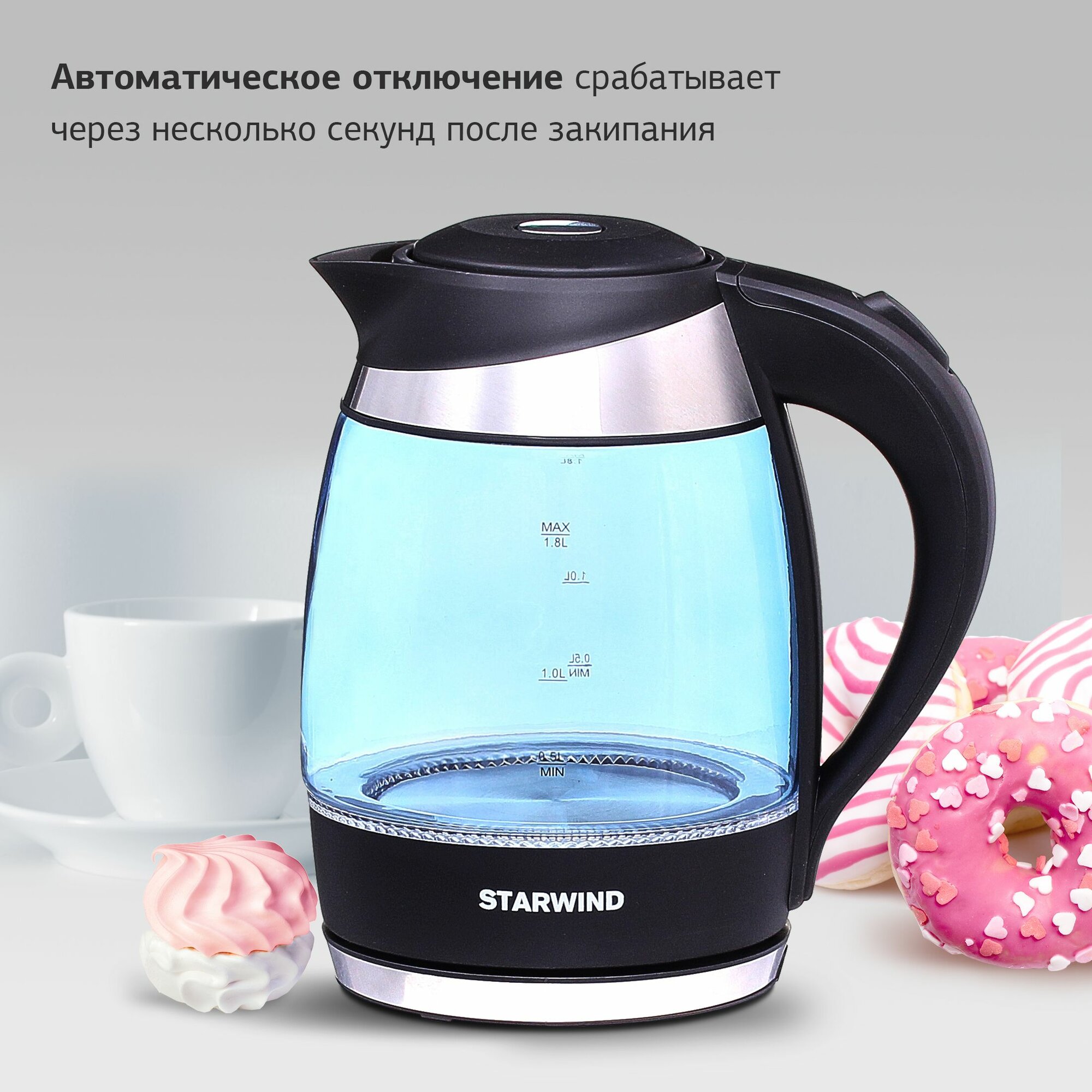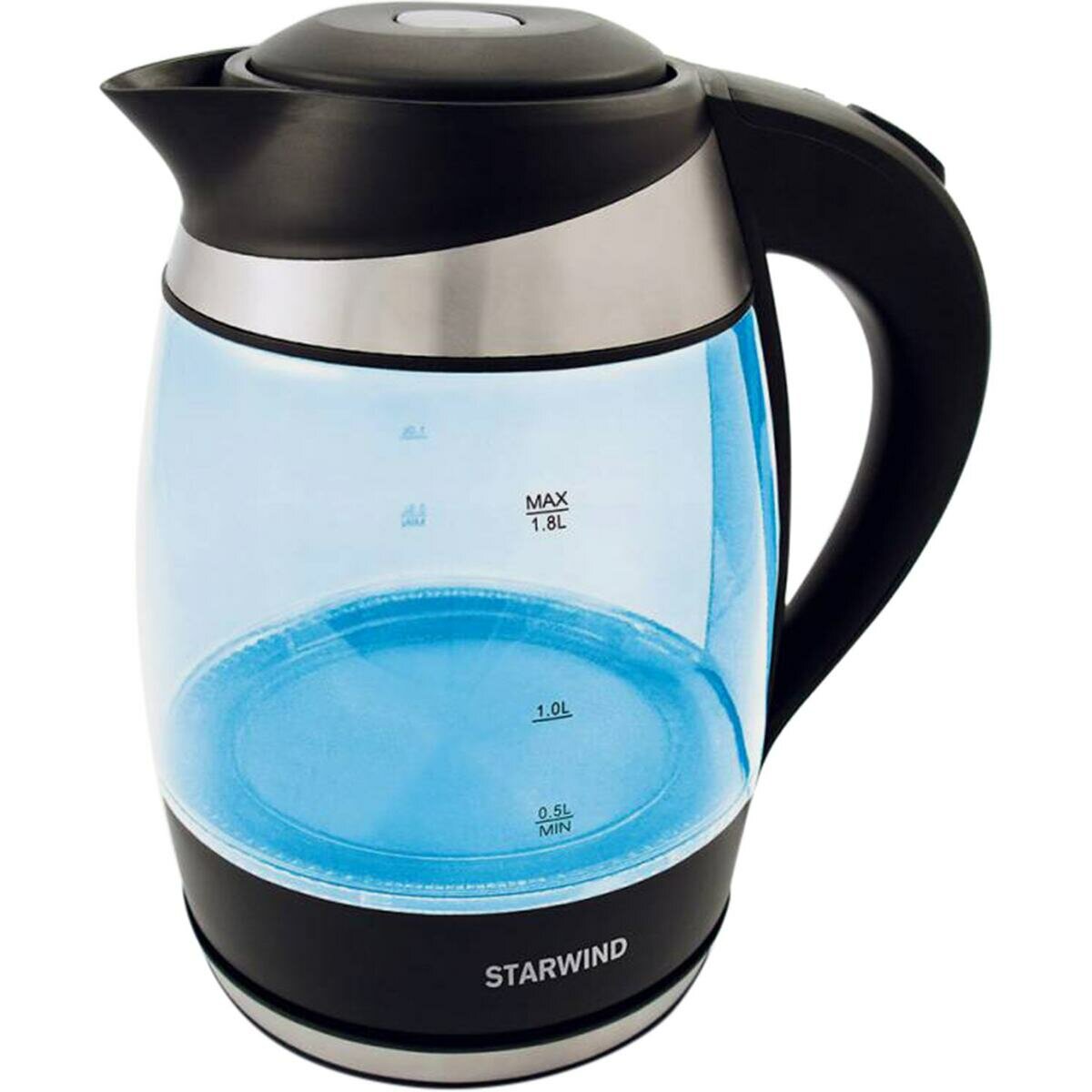 Купить Чайник электрический Starwind SKG2218 1.8л. 2200Вт голубой/черный (корпус: стекло)