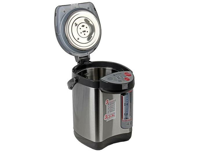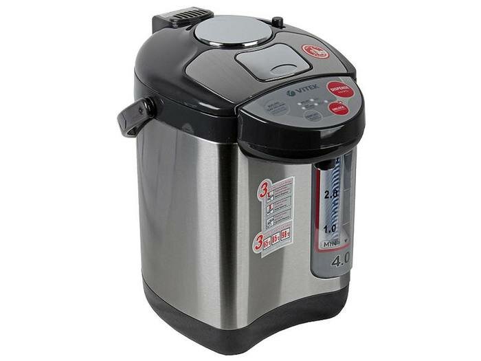 Купить термопот VITEK мне посоветовала подруга, у ее мамы такой же. И она им очень довольна. Доверилась совету, купила. Не большой, места много не занимает. Кипятит воду быстро. Если нужно подогреть, то и тут никаких проблем не возникает. Наливает воду тремя разными способами. Я чаще всего пользуюсь именно ручным. В панели управления я быстро разобралась. Но все равно читала инструкцию, чтобы чего-нибудь лишнего не нажать. Количество воды в термопоте видно. Через некоторое время использования пришлось мыть термопот изнутри, поскольку прозрачная пластиковая вставка изнутри почему-то потемнела. Вымыла… ничего сложного нет.