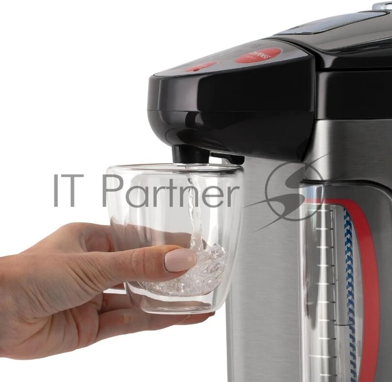 У нас в офисе стоит термопот VITEK 1188 уже несколько месяцев, очень удобная штука, значительно лучше чайников. Включаем термопот с утра и выключаем его только вечером. В течение всего дня вода подогревается автоматически. Температуру подогрева мы установили сами. Объема в 4 литра хватает нам на день. Мы наливаем воду в чашку вручную, хотя делать это можно и другими способами, как написано в инструкции. Уровень воды всегда виден через прозрачную вставку корпуса. Поэтому мы открываем крышку термопота только тогда, когда необходимо добавить воды.