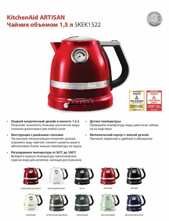 Ниже Вы можете прочитать отзывы на Чайник электрический KitchenAid Artisan 5KEK1522EBK, ознакомится с подробными характеристиками, посмотреть интересные обзоры и фотографии на Чайник электрический KitchenAid Artisan 5KEK1522EBK.