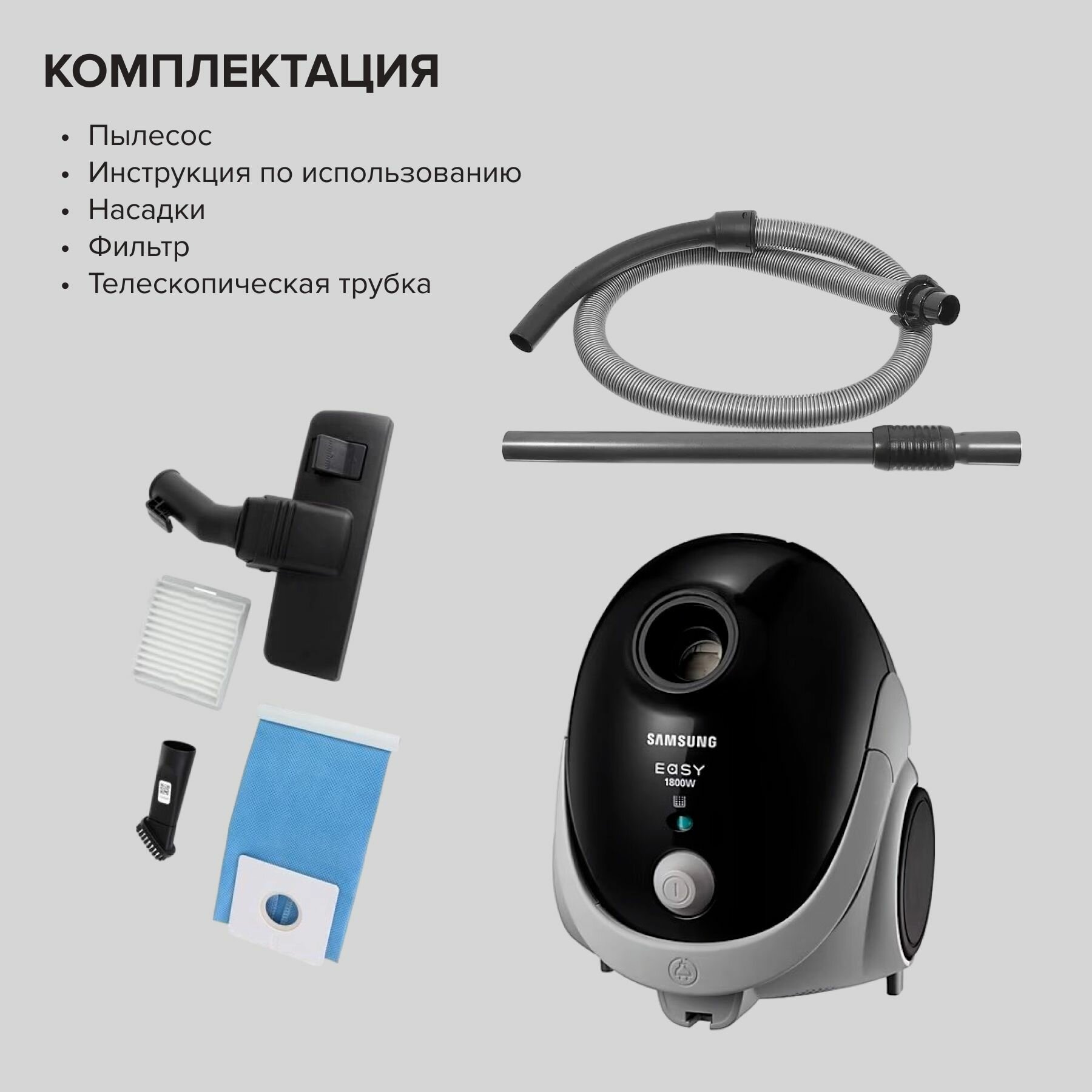 Пылесос Samsung SC5241 сухая уборка чёрный серый .