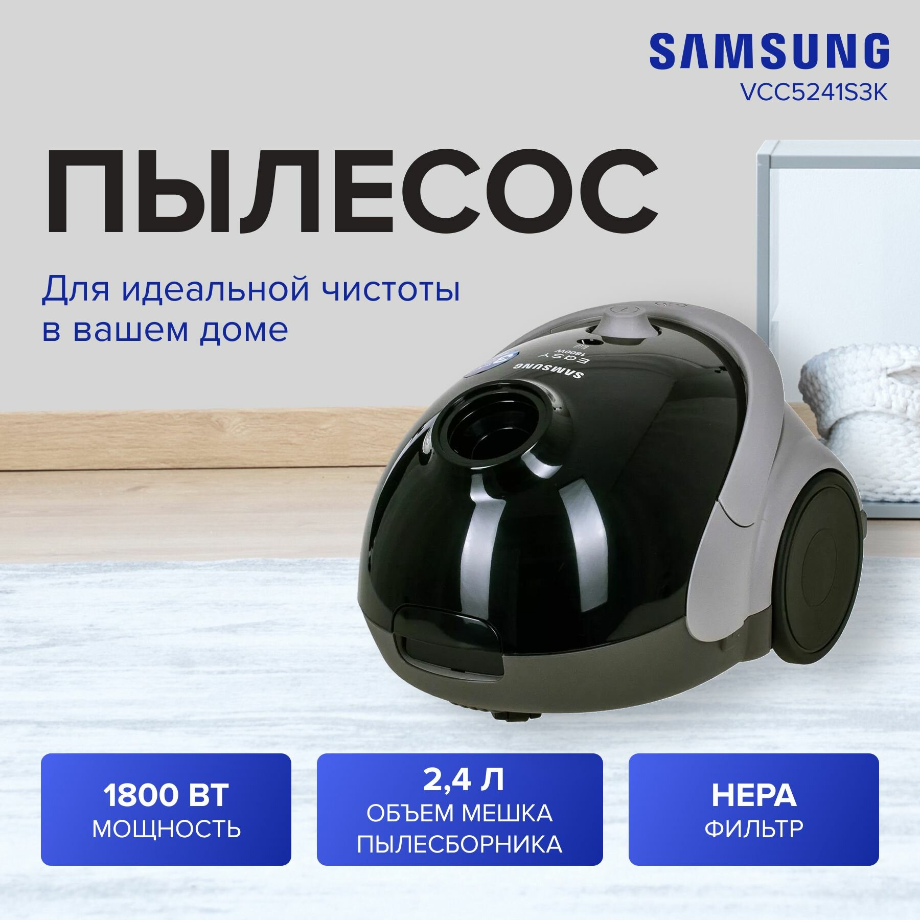 Ниже Вы можете прочитать отзывы на Пылесос с мешком для пыли Samsung VCC5241S3K/XEV, ознакомится с подробными характеристиками, посмотреть интересные обзоры и фотографии на Пылесос с мешком для пыли Samsung VCC5241S3K/XEV.