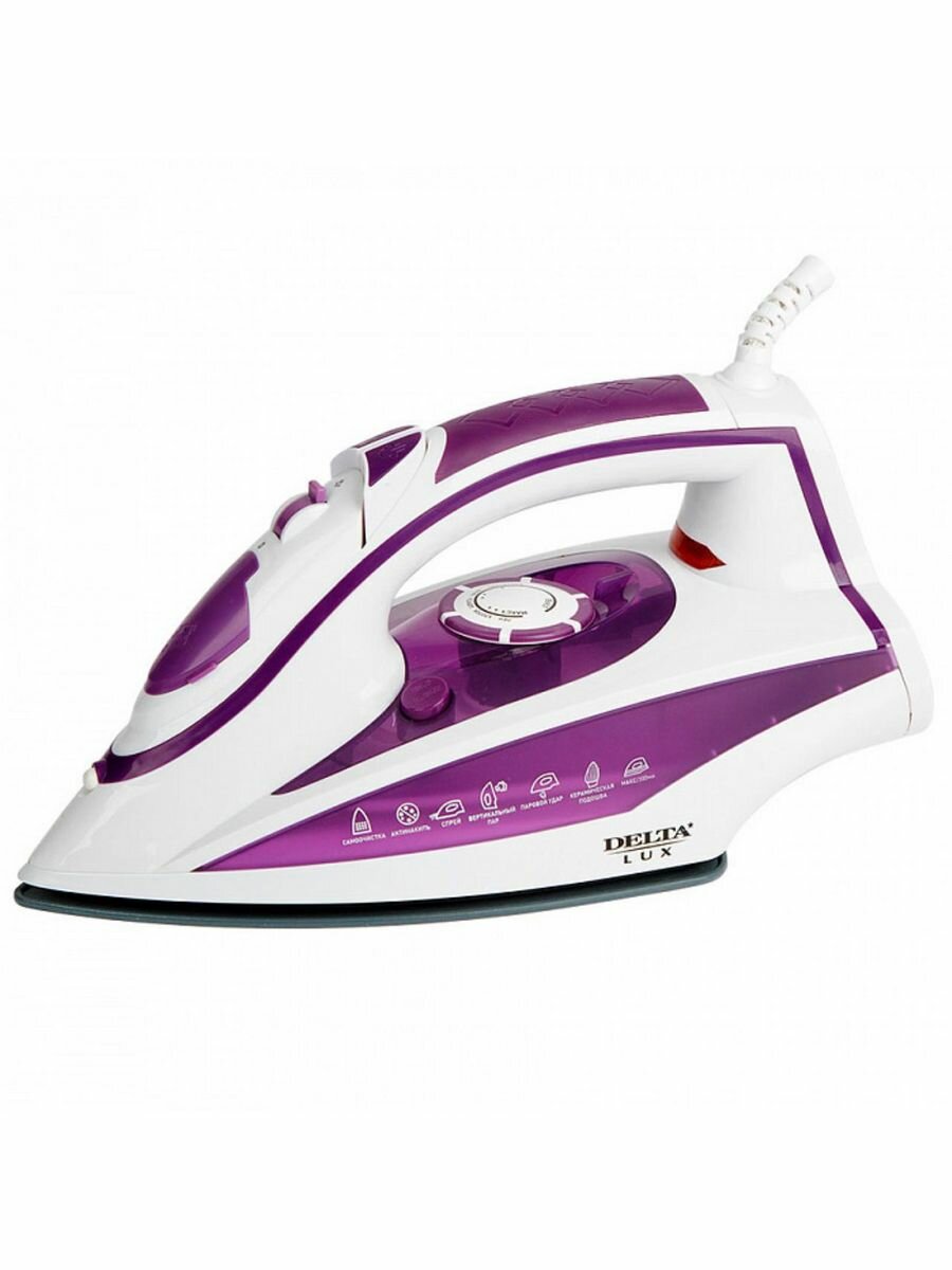 Утюг DELTA LUX DL-352 фиолетовый: 2200 Вт, керамическое покрытие, антинакипь