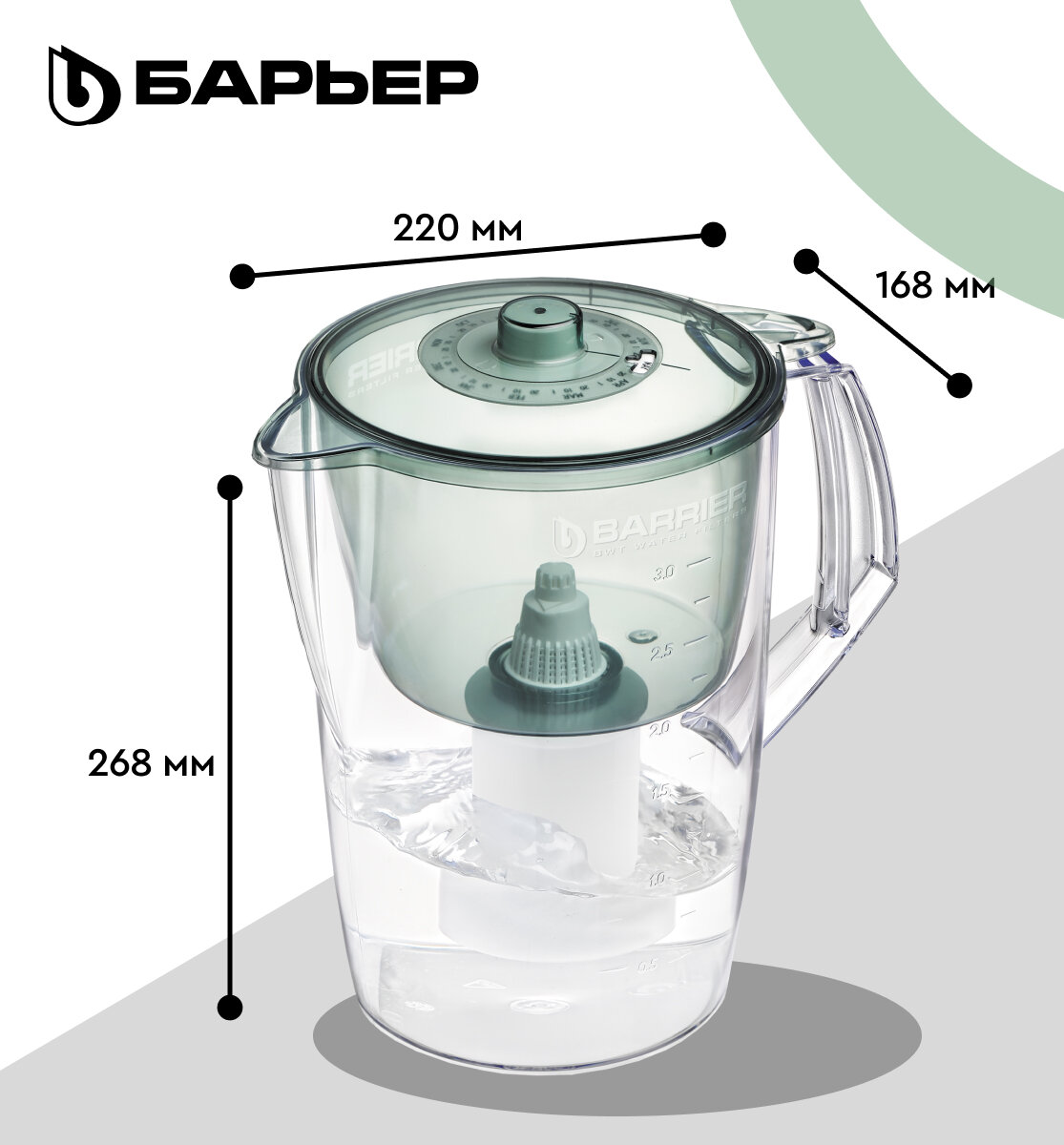 БАРЬЕР Норма малахит, фильтр-кувшин для очистки воды, 3,6 л, календарный индикатор