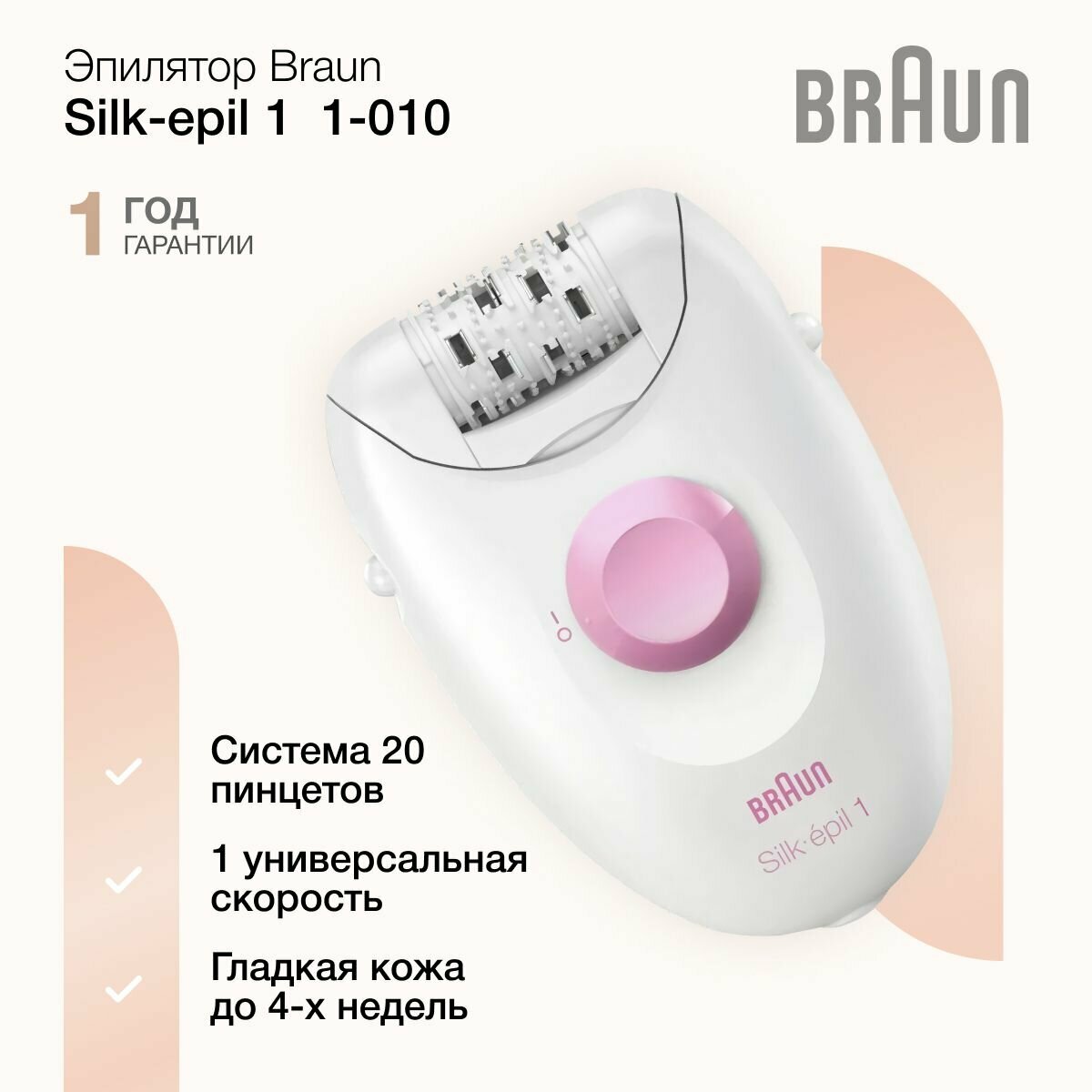 Эпилятор Braun S1 SE1-000 белый/ розовый