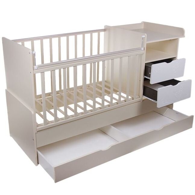 Прочитав множество форумов и отзывов, остановили выбор именно на такой кроватке и очень этому рады! У неё 2 уровня для положения матраса и опускающаяся боковина (уровень опять же можно регулировать), что поможет моей спине не наклонятся слишком низко, чтобы положить ребенка. Помимо этого, есть полозья для качания – прекрасно, если нет сил носить на руках!!! Вариант с колёсами позволяет двигать кроватку как удобно! При этом, никаких лишних ящиков-пылесборников, которые затрудняют доступ для мытья под кроватью! Выглядит кроватка приятно, цена совсем недорогая! Размер стандартный – удобно, когда покупаешь постельное белье! В общем, очень рада покупке и ни разу не пожалела, что взяла именно её! |