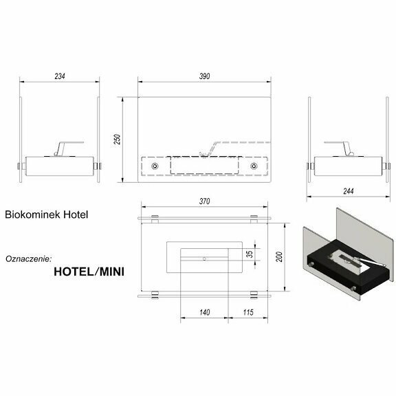 Купить Биокамин Kratki HOTEL MINI, Стекло, черный, 39x25x23,4 см.