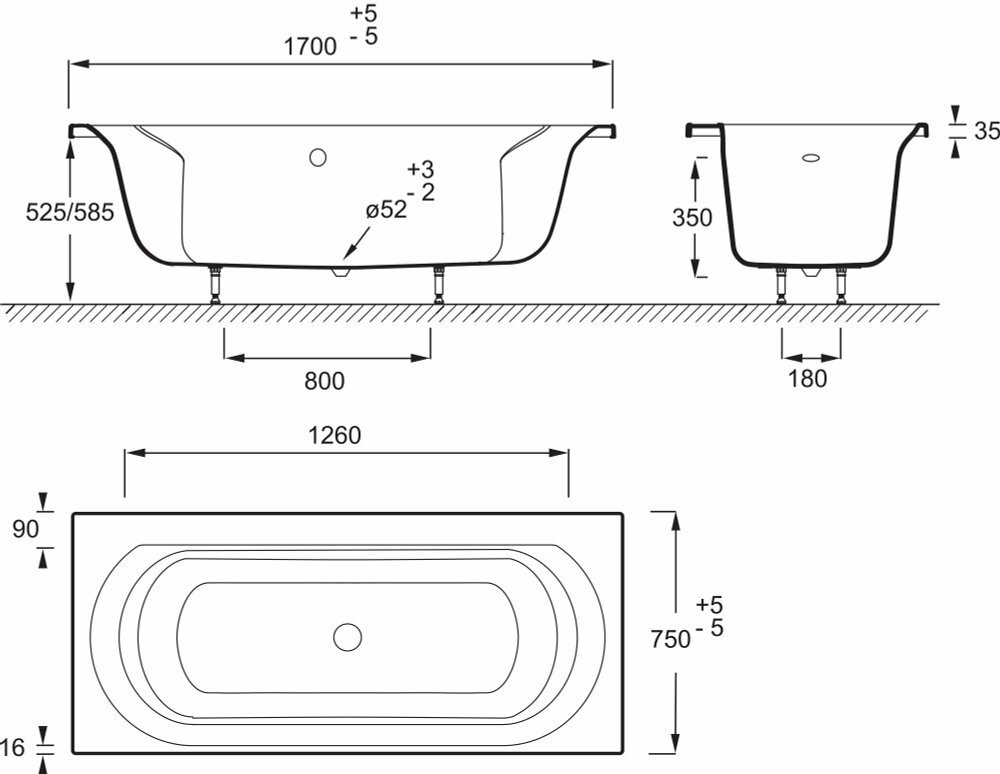Акриловая ванна Jacob Delafon Elise E60279RU-01 170x75