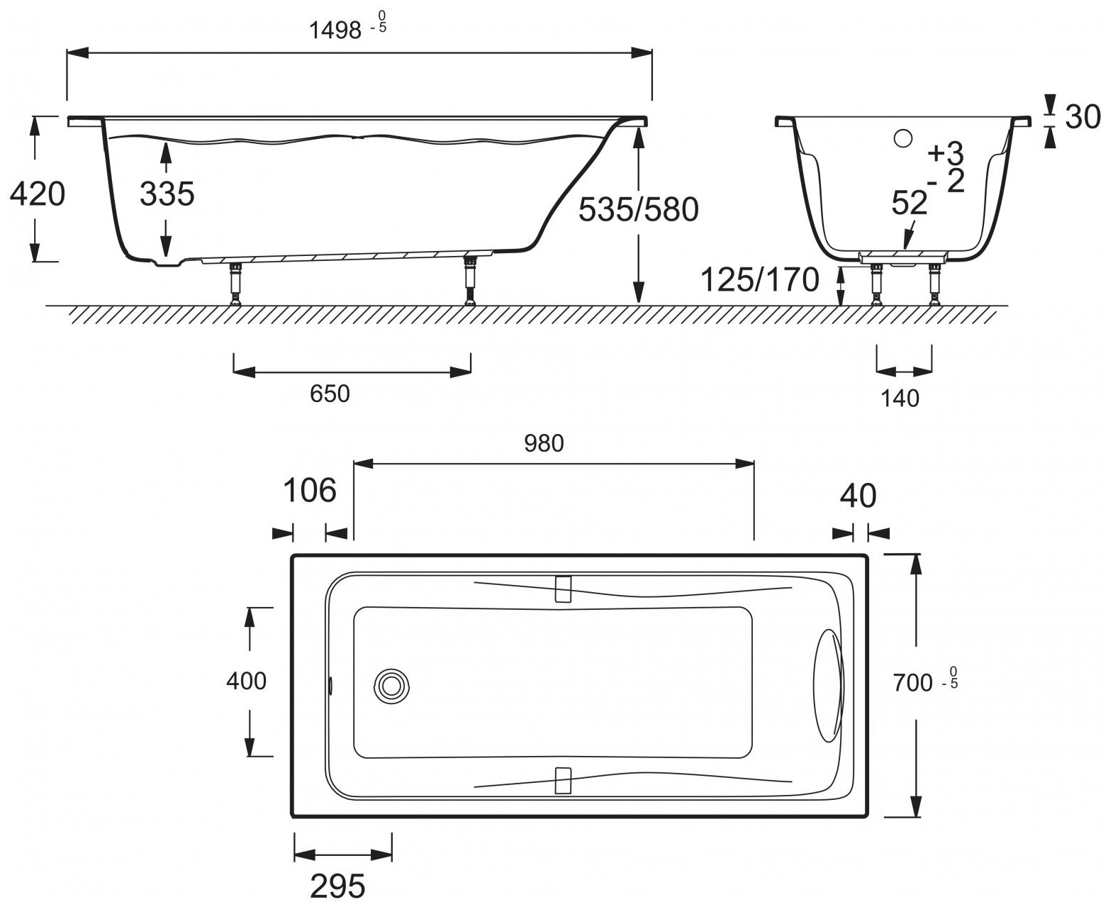 Ванна Roca Continental, 150 x 70 см, Чугун, 21291300R
