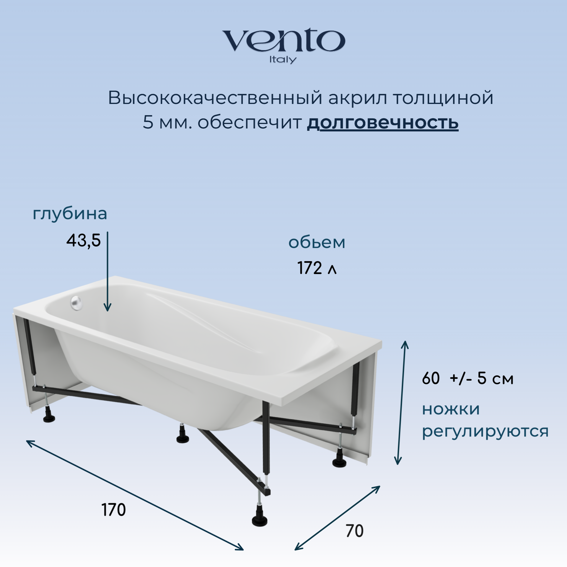 Акриловая ванна 170х70 SERENA от бренда Vento Italy, белая, п интересное: