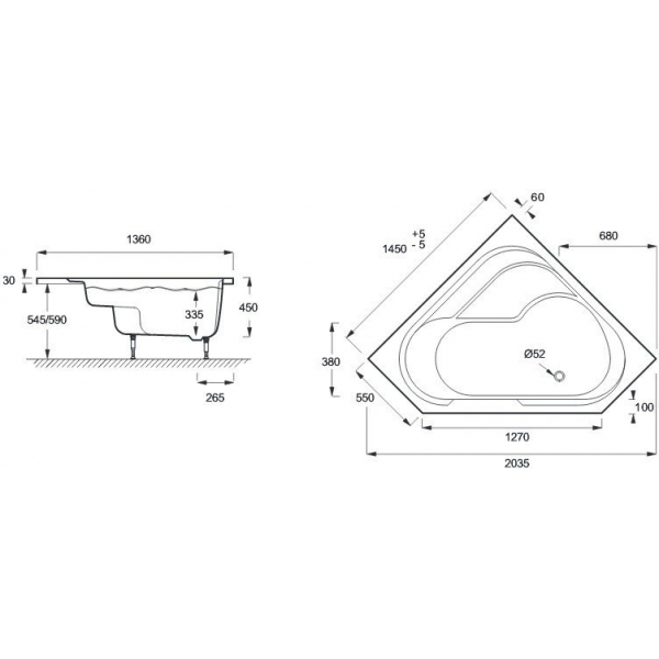 | Дополнительная информация | правосторонняя и левосторонняя, душевая зона, встроенное сидение; опции: душевая перегородка |