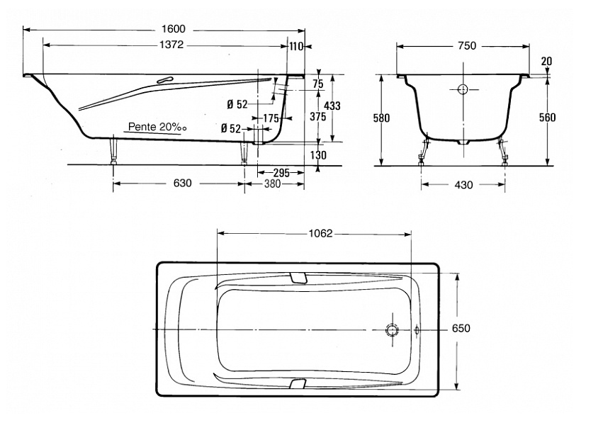 СохранитьBaнна чугунная 160x75 с отверстиями для ручек Jacob Delafon REPOS E2929-00 интересное: