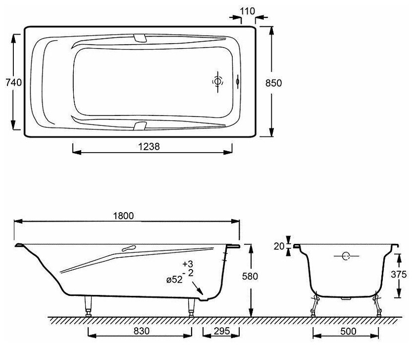 | Плюсы: | Чугунная ванна, не скользит, противоскользящее покрытие дна, есть ручки, широкая и вместительная. |