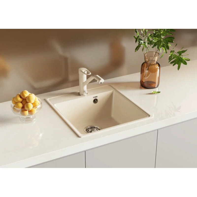 Мойка кухонная Ulgran из кварцевого композита прямоугольная Quartz Ruma, цвет: жасмин, база: 75.5х48.5 см, арт. Ruma 780-01