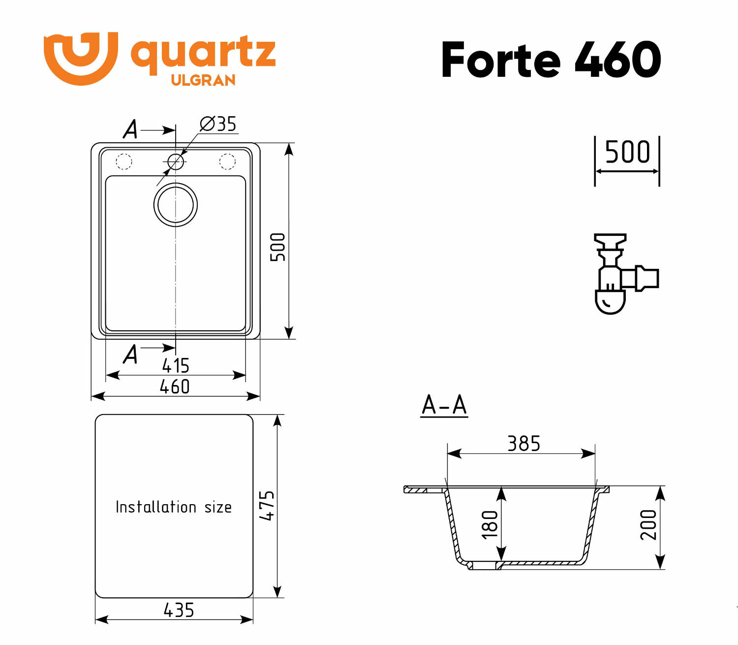 Кухонная мойка Ulgran Quartz Forte 460-07 уголь