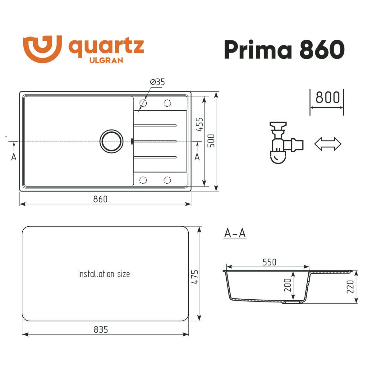 Купить Мойка ULGRAN Quartz Prima 860-07, уголь