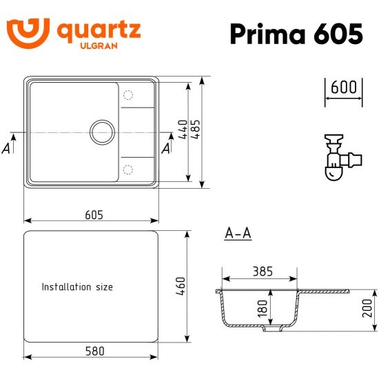 Мойка ULGRAN Quartz Prima 605-03, десерт
