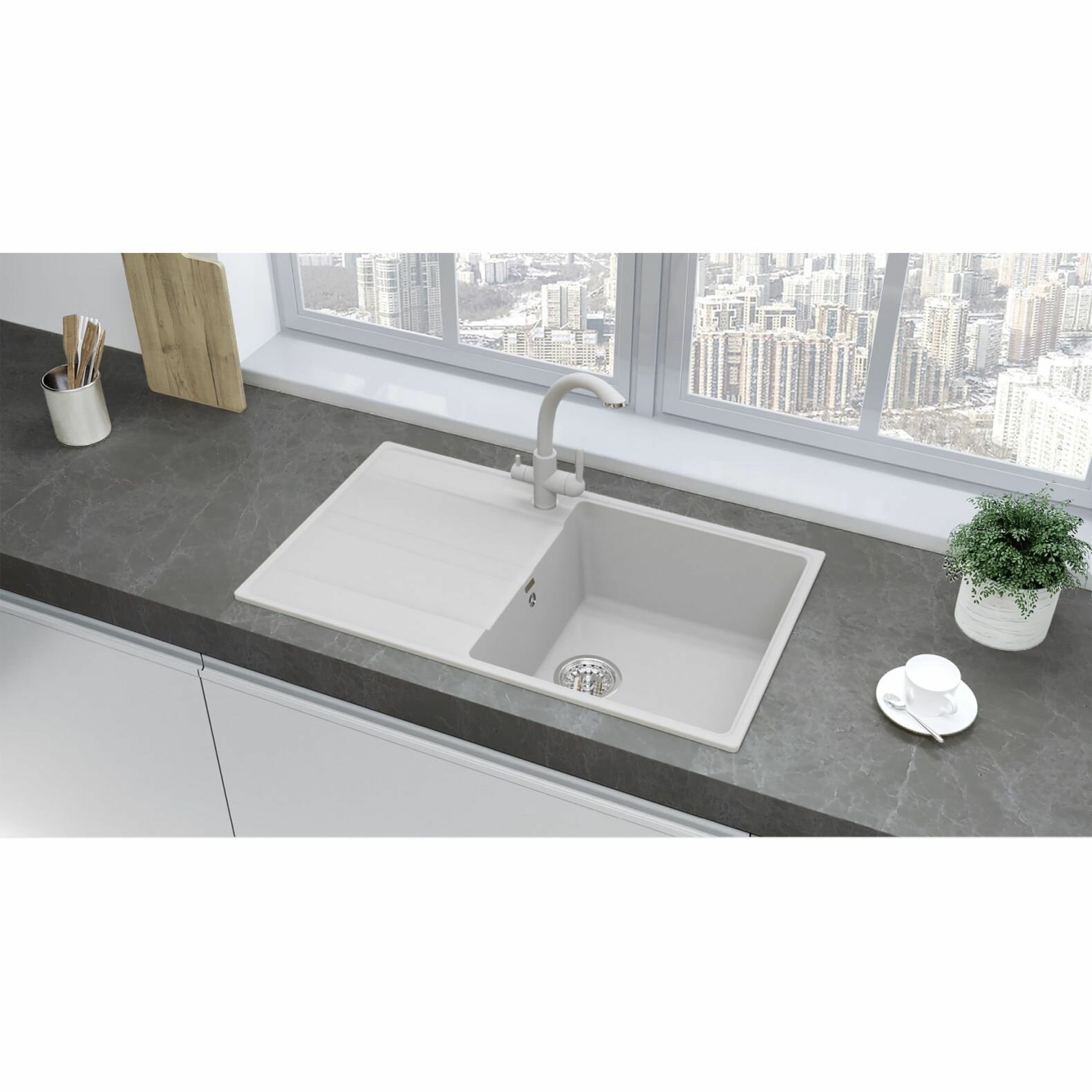 СохранитьМойка кухонная Ulgran из кварцевого композита прямоугольная Quartz Prima, цвет: платина, база: 82.5х47.5 см, арт. Prima 850-04 интересное: