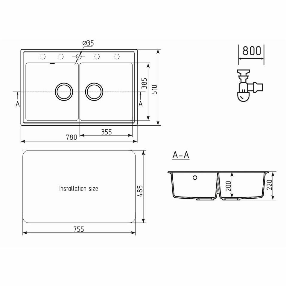Мойка Ulgran Classic ультра-черный (U-400-344)