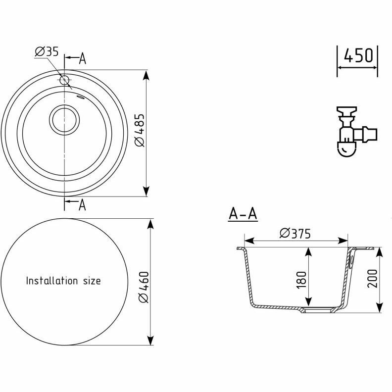 Мойка кухонная Ulgran из кварцевого композита круглая Quartz Nora, цвет: уголь, база: 46х46 см, арт. Nora 485-07