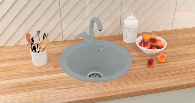 Мойка кухонная мраморная ULGRAN U-405 495мм круглая (310) серый/Раковина для кухни