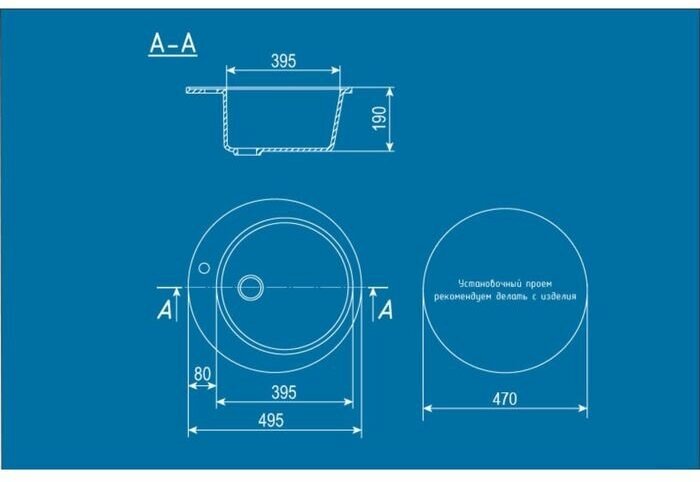 Мойка Ulgran, мрамор, U-405-309, (D-495*190 мм), темно-серый, сифон и сливная арматура