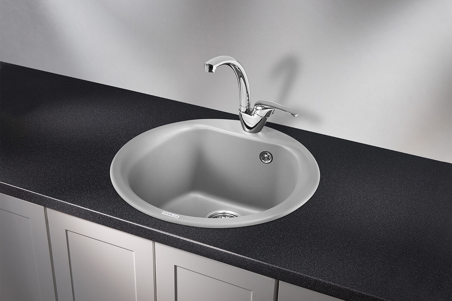 Кухонная мойка кварцевая Granula GR-5101 односекционная круглая, врезная, чаша 440x385, цвет графит (5101bg)