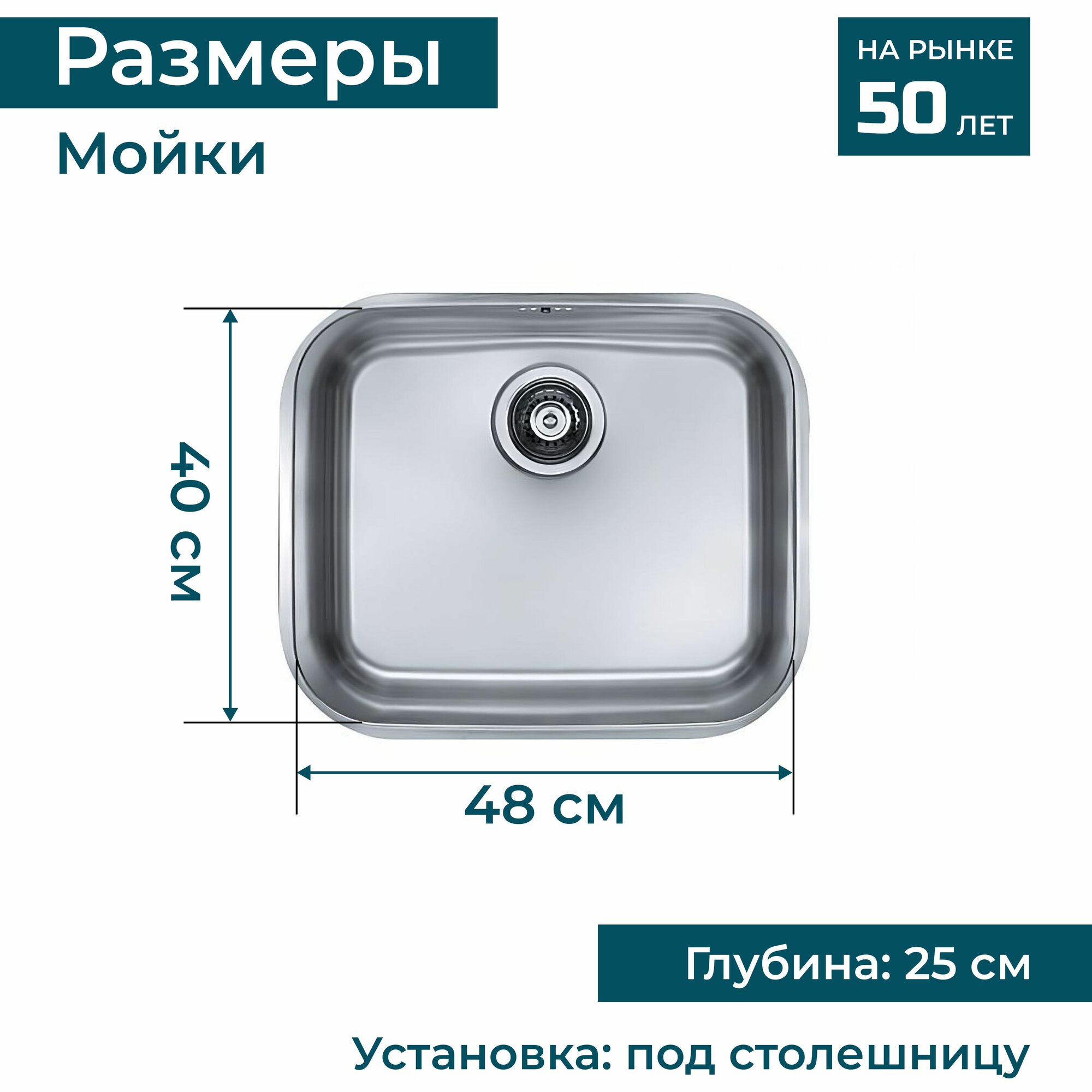 Мойка кухонная врезная нержавейка ALVEUS VARIANT 10 48х40х25 см под столешницу. Серый металлик