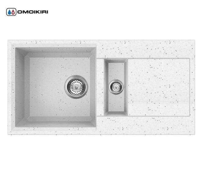 Кухонная мойка двухчашевая с крылом OMOIKIRI Sakaime 86-2-WH, искусственный гранит/белый